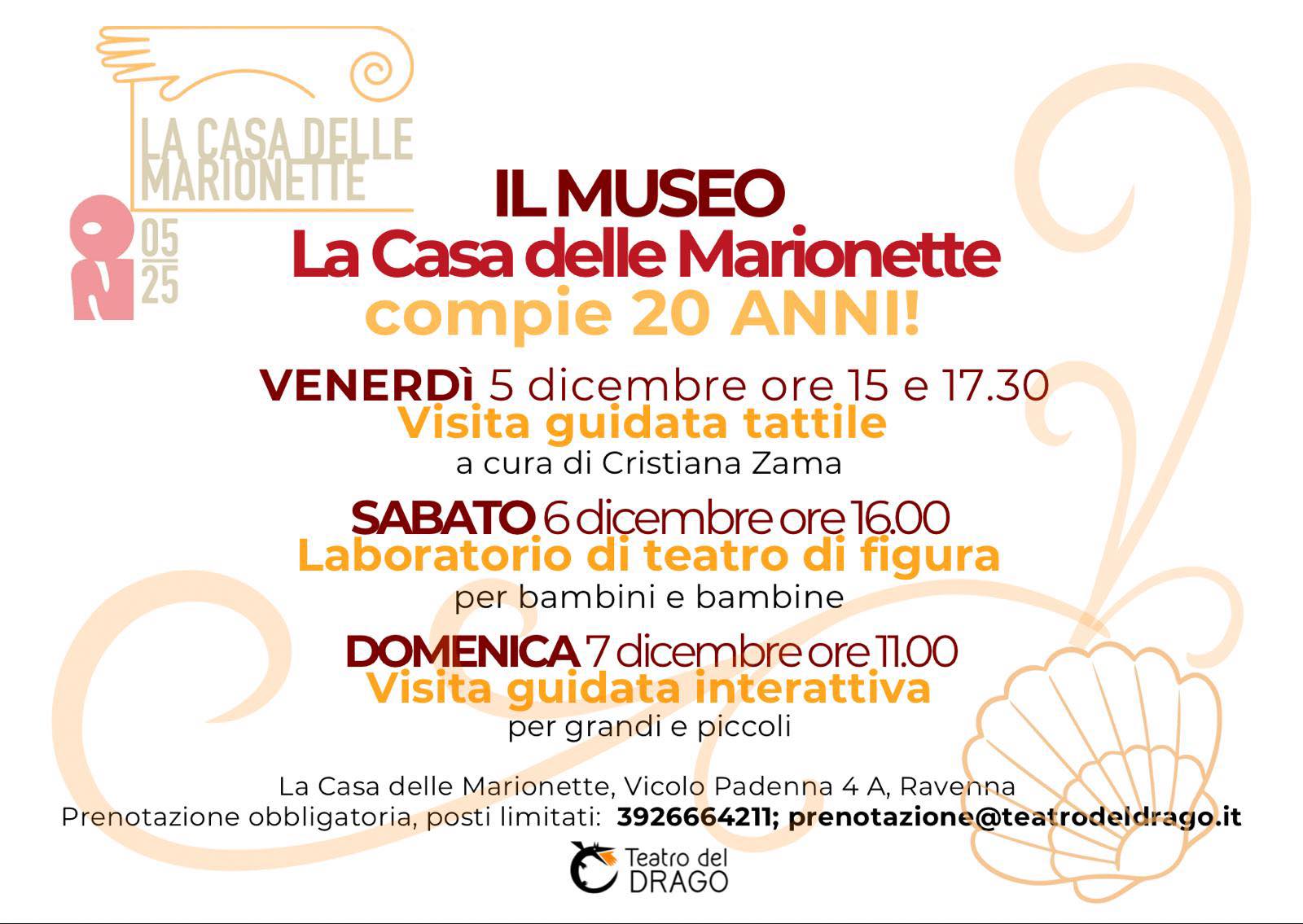 Per tutti gli eventi la prenotazione è obbligatoria, i posti sono limitati.